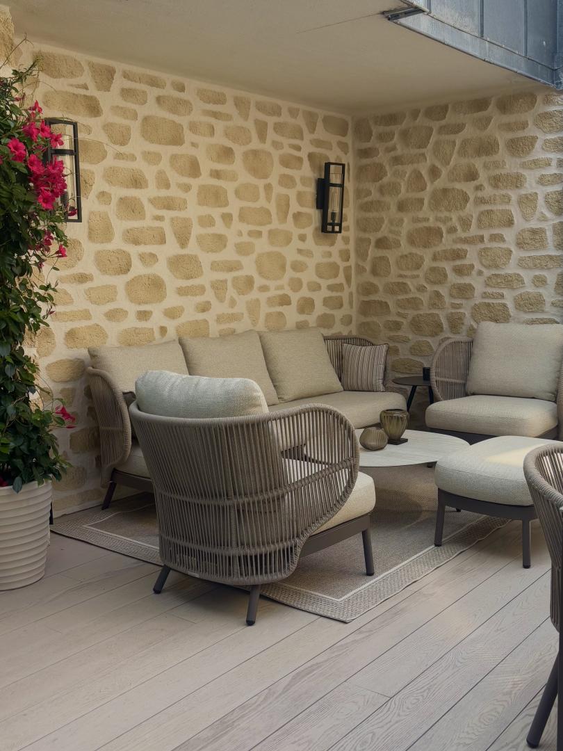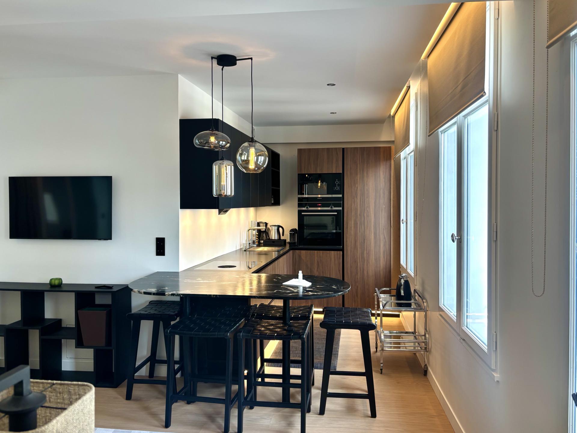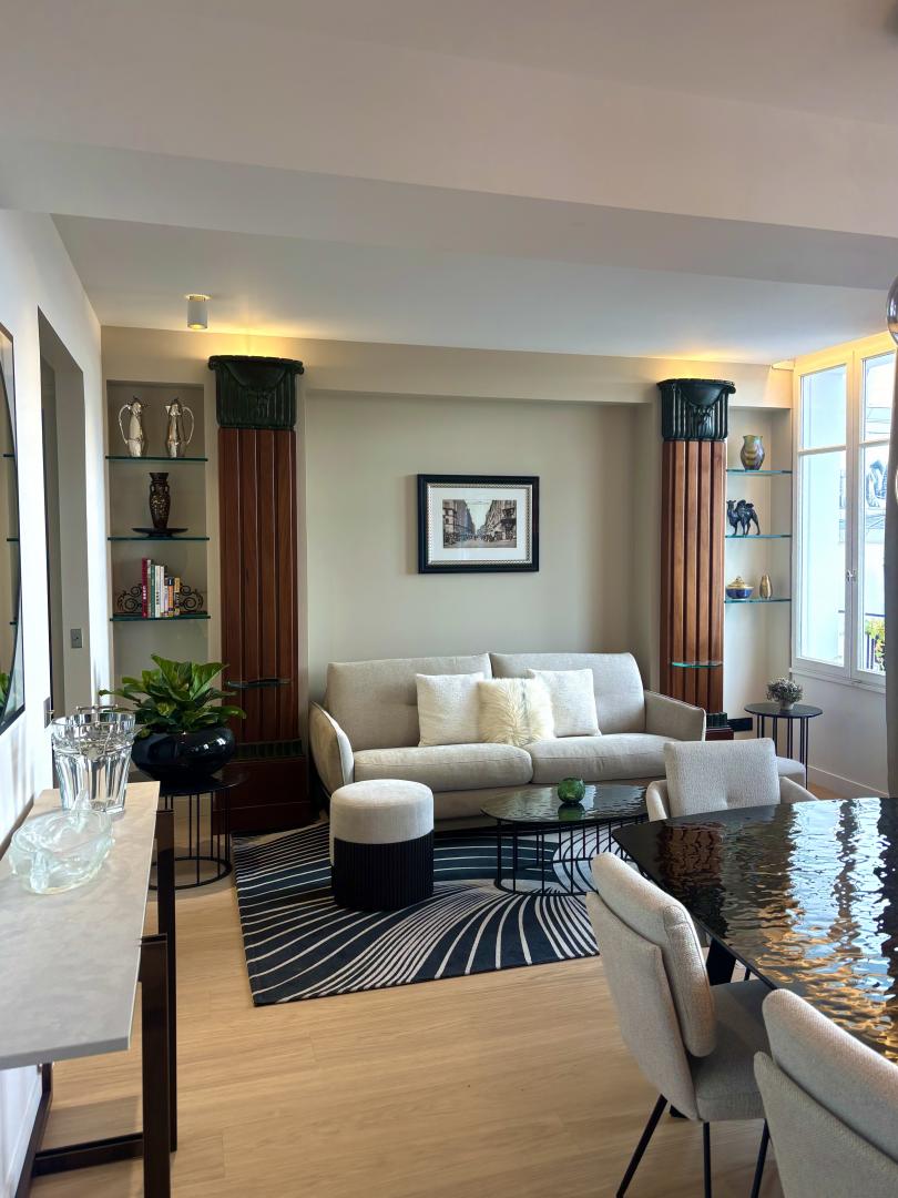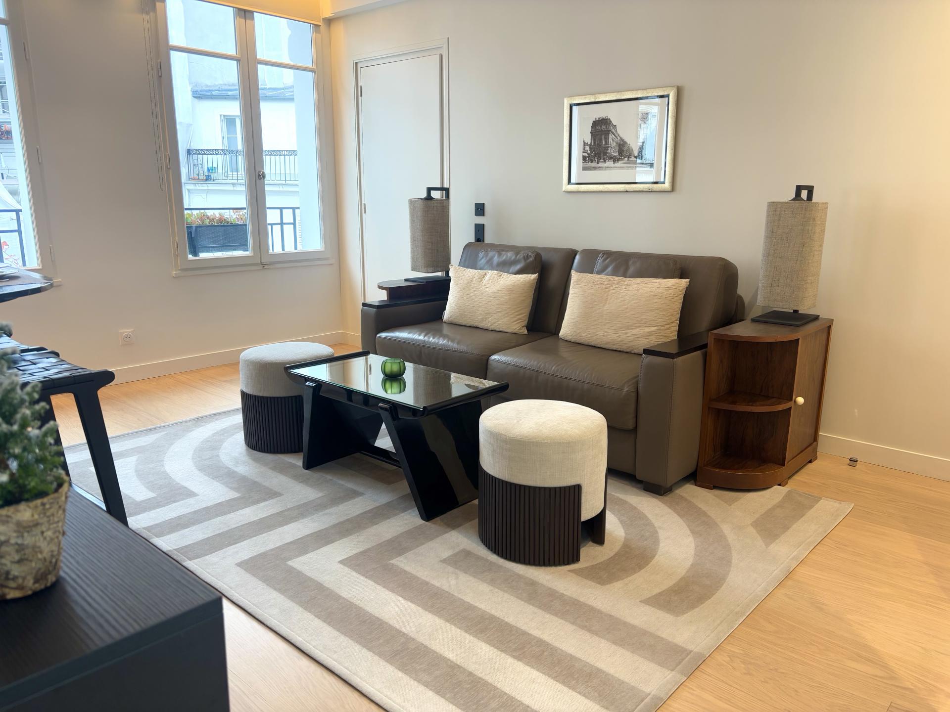 L’Appartement Exécutif, chic et moderne, vous offre une vue imprenable sur la Tour Eiffel et une terrasse privative de 26 m² aménagée en jardin secret avec espace détente et repas, un privilège rare au cœur de Montmartre.