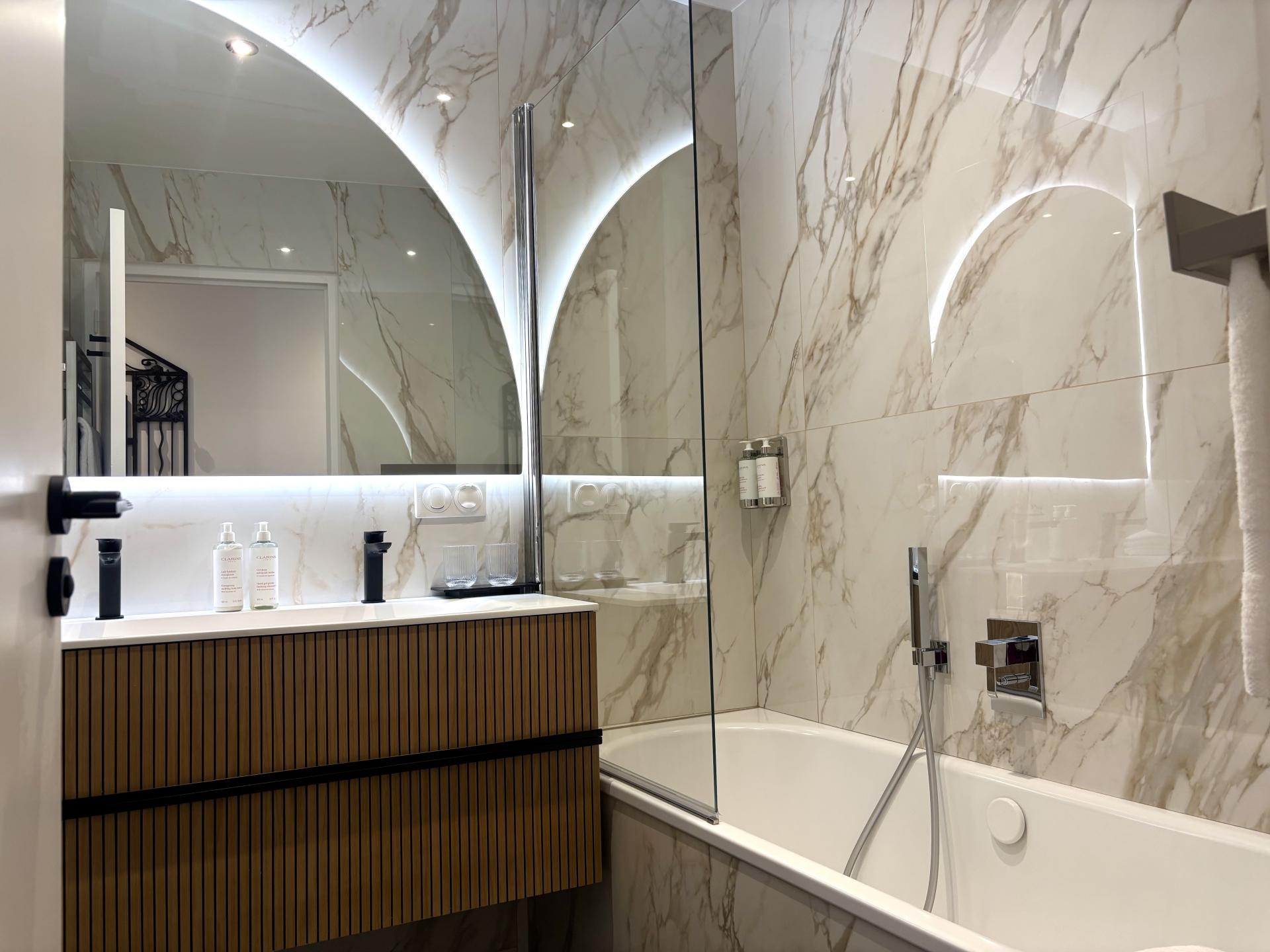 Cet appartement composé de 2 chambres et 2 salles de bain, permet de cohabiter en famille ou entre amis dans le plus grand des conforts.