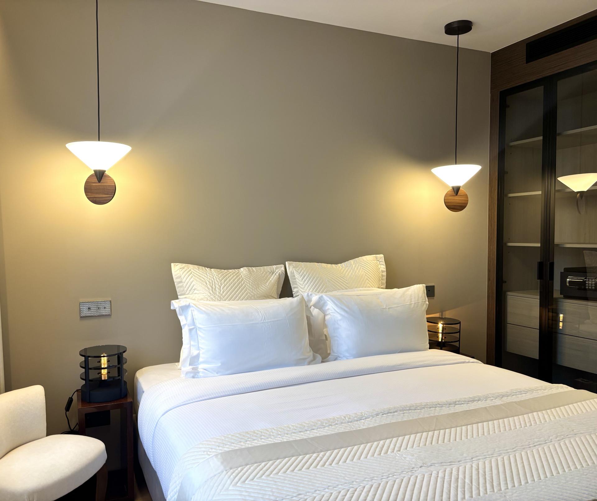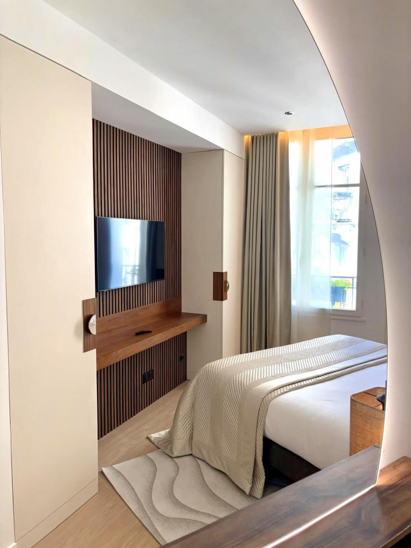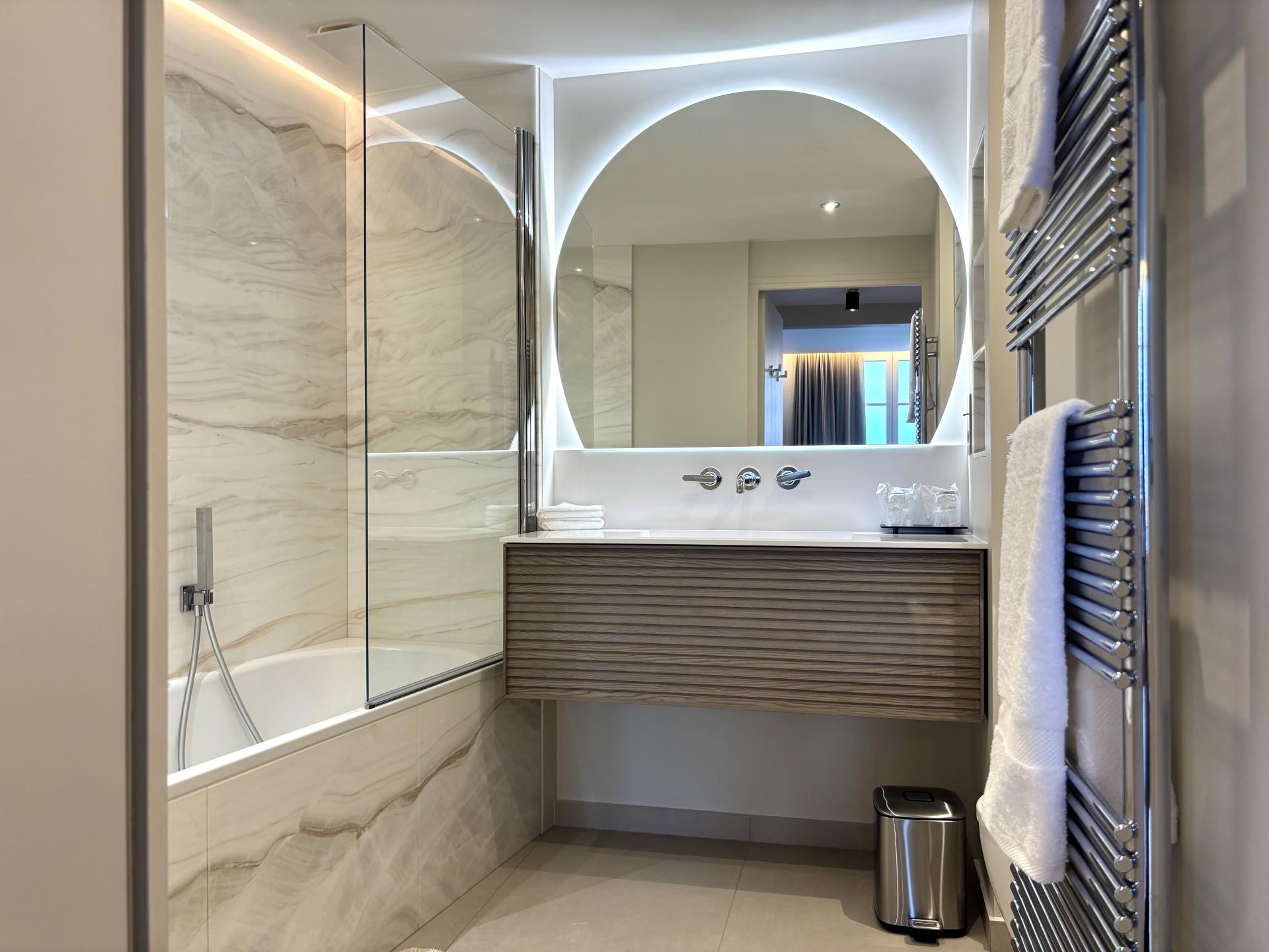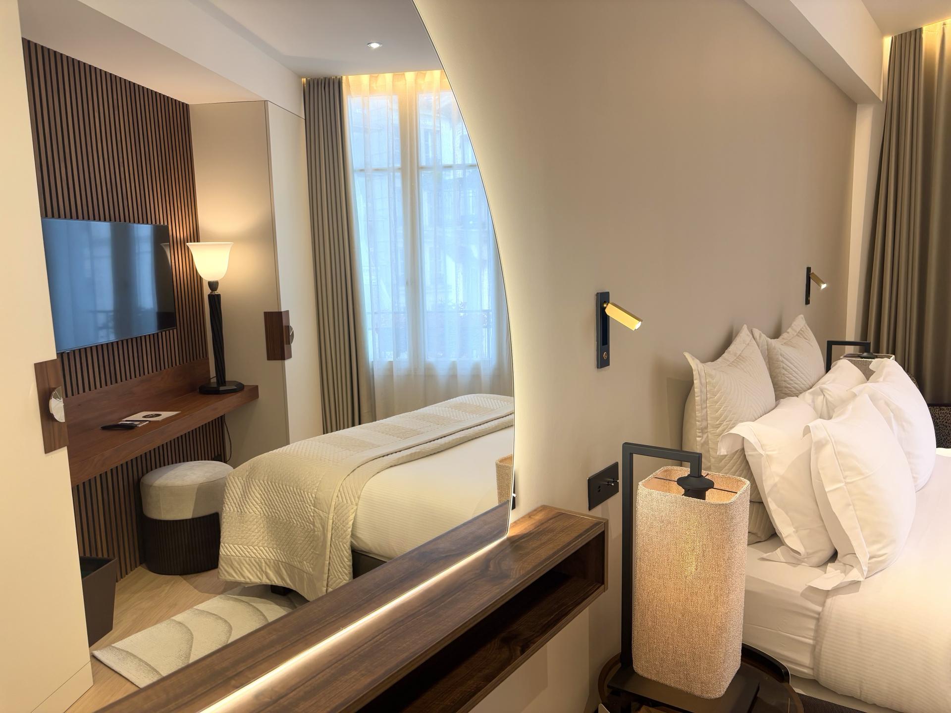 L’Appartement Supérieur de 55 m² conjugue raffinement et authenticité parisienne à travers deux chambres et deux salles de bain élégantes, et peut être relié à l’Appartement Exécutif pour offrir la privatisation exclusive de l’étage.